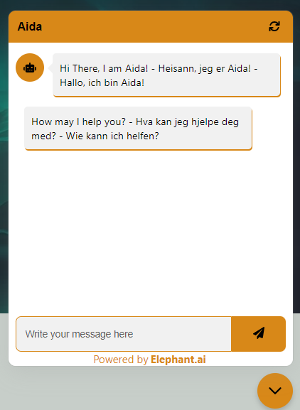 The AI Chatbot is delivered from our affiliate, Elephant.ai And it is just amazing. Aida, as we call her, is connected to chatGPT and internet, so she can answer almost anything. And she learns. She can understand a lot of languages, and can respond with same language as the question was written in. She also has a complete overview of our products and services. In fact, she is possible the perfect admin and information resource, available 24/7/365, always positive and friendly, and never has a bad day.
